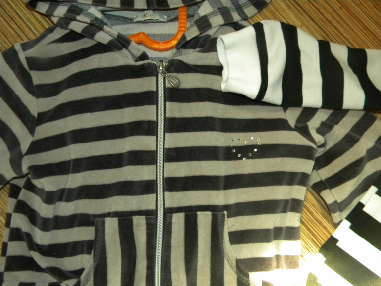 65.Кофта на молнии Deloras. Отличное качество, без катышков, очень красивая, стразы на месте. Из нюансов - на левом рукаве на локте пятнышки краски, влезла дочь на детской площадке, удалять не пробовала, думаю. это возможно). Цена 350руб.