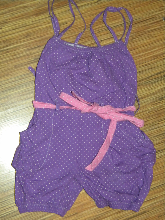 1.ХБ комбинезон Picoletto цвет фиолетовый в горох, пояс розовый. Шортики у комбинезона внизу на резиночке, сверху бретельками можно регулировать ростовку. По этикетке рост 110см. Можно носить с 95см. Тонкий и лёгкий на лето. В идеале . Цена 500руб.
