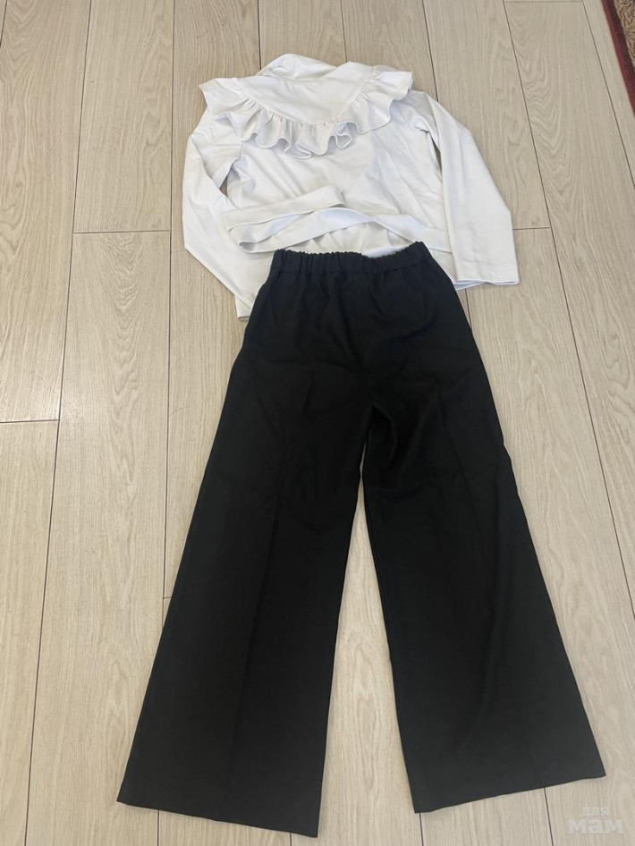 дизайнерский школьный комплект местных дизайнеров. Нам к сожалению велико, хотя маркировка на блузе 146, но они по мне на 152-158 рост. Сделаю замеры, фото и видео.
