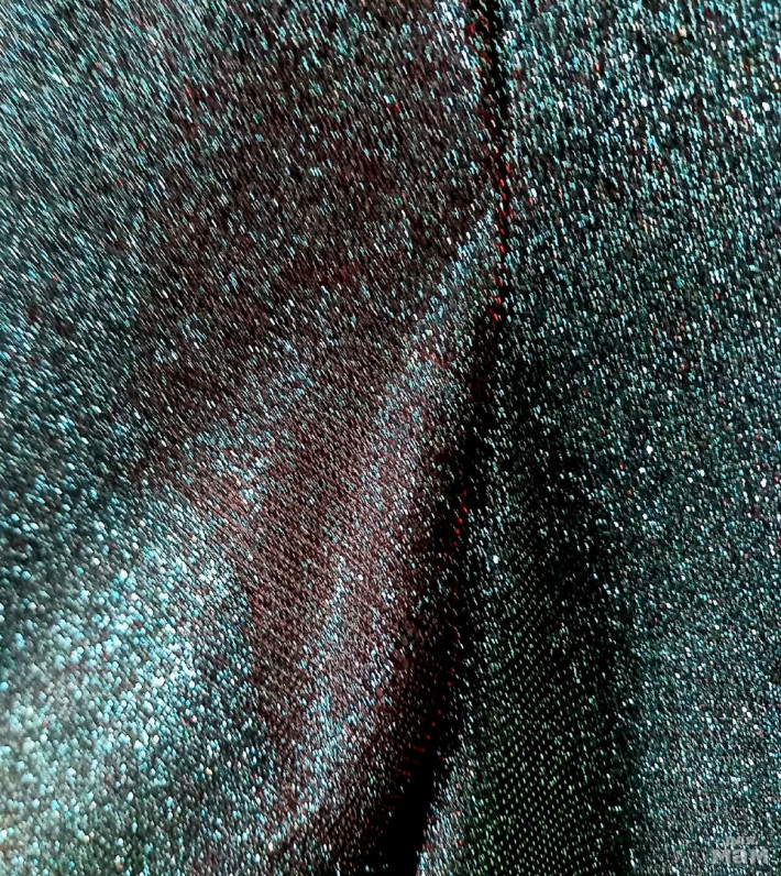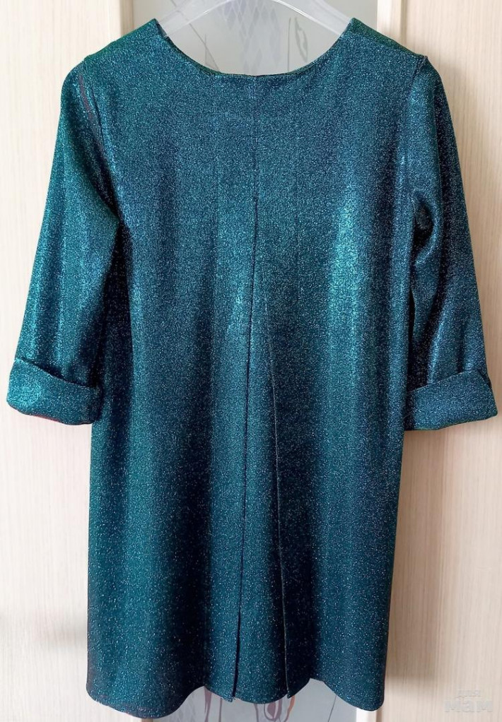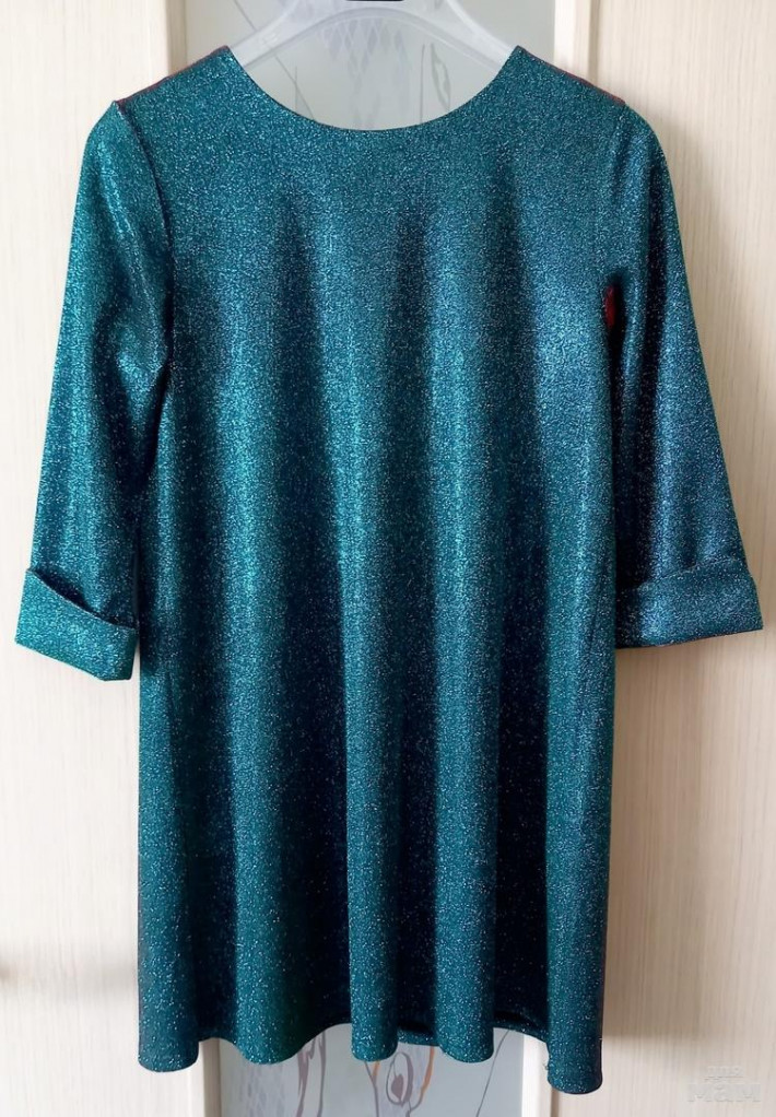Платье-трапеция из струящегося трикотажа с люрексом. Цвет: изумрудный хамелеон. Рукав 3/4.