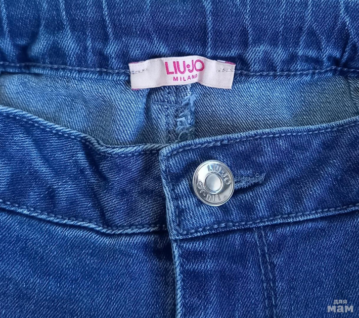 НОВЫЕ стильные джинсы LIU JO (Италия) ОРИГИНАЛ р.10. Цвет: синий с эффектом потертости. Состав: 97% хлопок, 3% эластан. Модель: Wide Leg (палаццо). Два кармана спереди, есть утяжка на талии. Декорированы стразами.