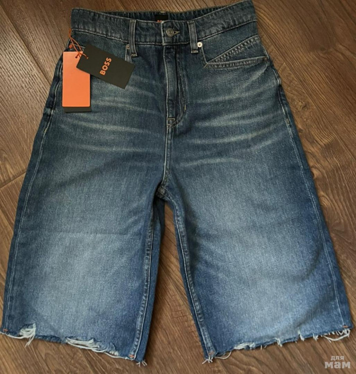 Женские джинсовые шорты BOSS Orange с высокой талией и необработанным краем. П/о Талия 36 см, бедра п/о 46 см, длина внешняя сторона от пояса 56 см. Размер на бирке 26