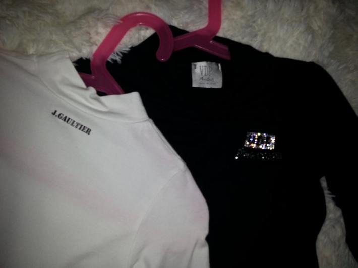 Очень приятные кофточки. Чёрная в идеале. Одевалась несколько раз. Молочная в хорошем состоянии.