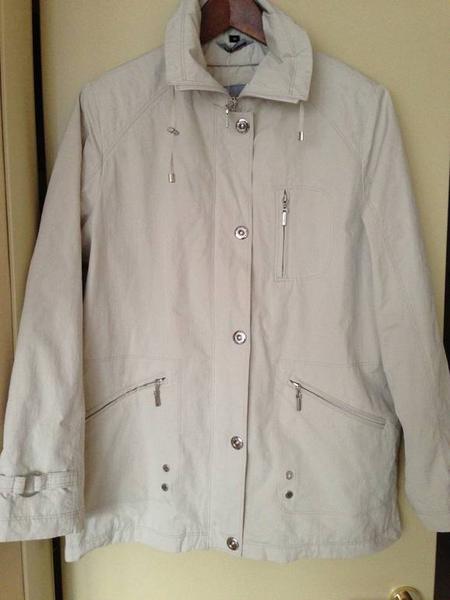 Куртка очень стильная , благородного светлого цвета с застежкой молнией и на кнопках.