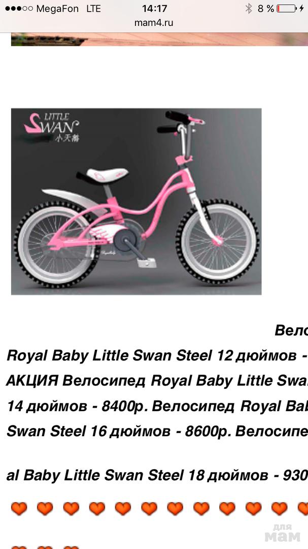 Велосипед Royal Baby Little Swan Steel 18 дюймов - 10400р.