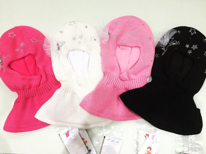 Шлем на хлопковой подкладке,утеплен синтепоном. Декорирован узором из страз в виде феи с крылышками из фатина.