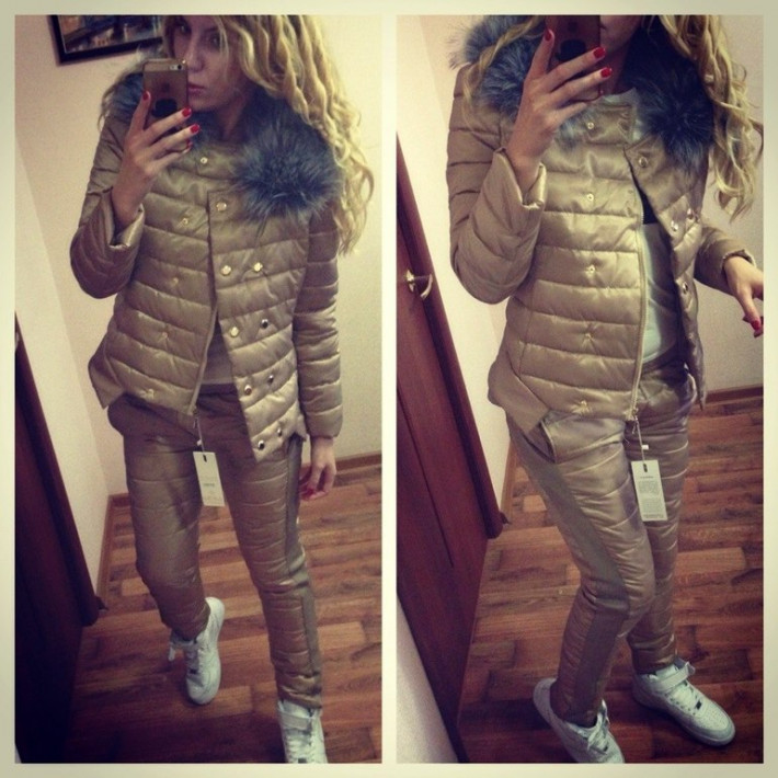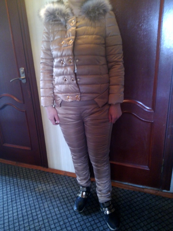 Продам очень красивый теплый костюм. Размер 46, подойдет на ОБ до 105,цвет золотой,мех искуственый но очень хорошо смотрится, отстегивается,покупала для себя,очень хотела его,но мне не много жмет.1300р