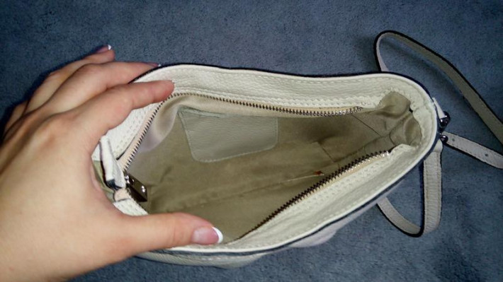 Натуральная кожа, размер 23*28см, максимальная длина ремня 130см. Застегивается на молнию, внутри 1 отделение + кармашек на молнии + кармашек для телефона; наружных карманов нет.
