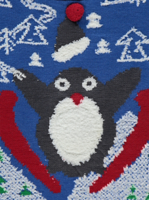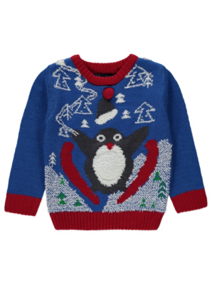 Новогодний джемпер фирмы George. Синий с красным, впереди вывязан Пингвин, грудка белая, отделка на шапочке из объемных ниток, помпон объемный. Состав 100% мягенький акрил. Пингвин пищит, когда на него нажимаешь. Размер 3-4г(98-104), 1100руб.