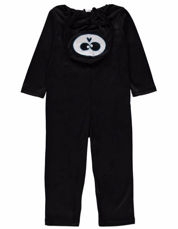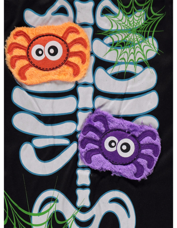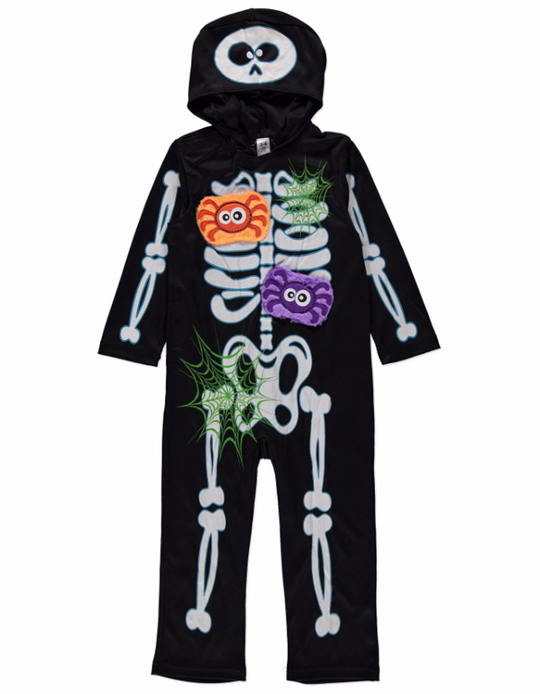 Костюм Веселый скелетик фирмы George. Цельный комбинезон, расстегивается сбоку как детский слип, застежки-липучки. Комбнезончик с капюшоном, паучки снимаются-одеваются на липучках. размер 1-2г (86-92), 3-4г(98-104) 1100руб