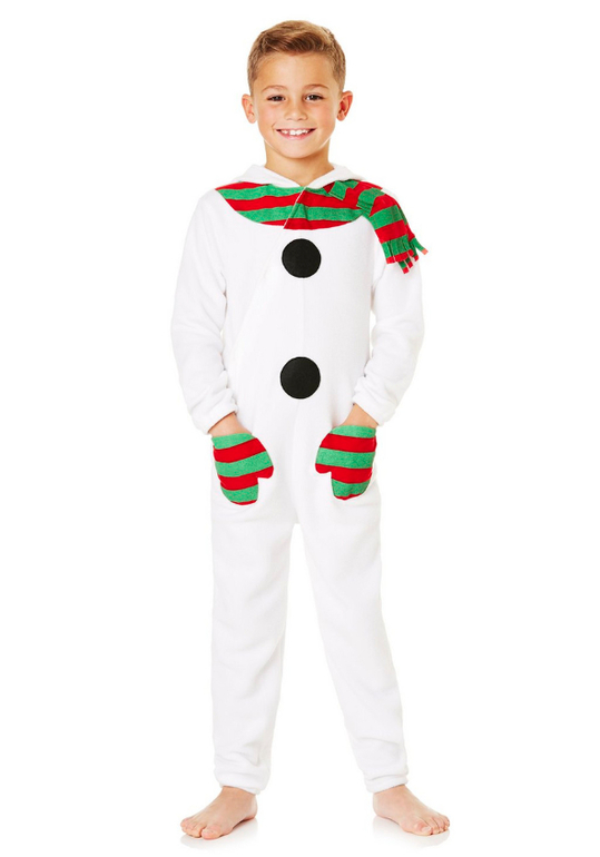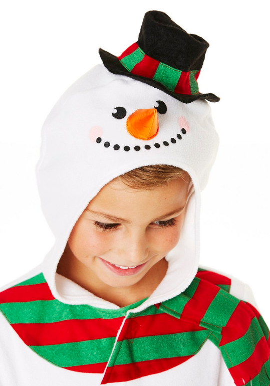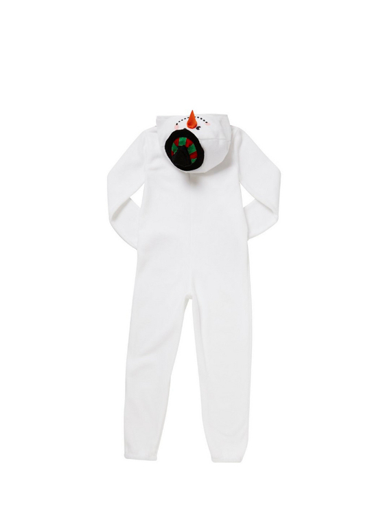 Новогодний костюмчик с капюшоном Снеговик фирмы F&F. Велюровый, мягенький, впереди и внизу застежка кнопки. Впереди аппликация шарфик, на ноге вышита надпись I am snow happy, в капюшоне яркая подкладка в полоску. Состав 100% хлопок/100% полиэстер. Внимание, тканевые этикетки надрезаны, бумажных нет. Поставляются на вешалках в пакетах.