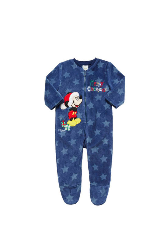 Слип флисовый Новогодний фирмы F&F. Синий с голубыми звездами, впереди аппликация Микки Маус в новогодней шапочке, застегивается на молнию. Состав полиэстер. размеры 0-3мес (56-62), 3-6мес (62-68), 6-9мес (68-74), 9-12мес (74-80) 790руб.