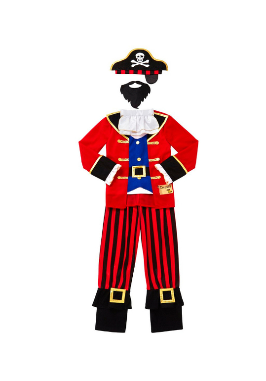 Шляпа, кинжал (37см длина), крюк, повязка на глаз на резинке, серьга.