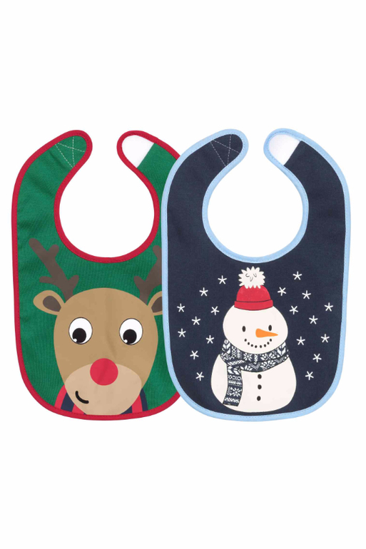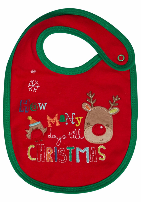 Нагрудник-слюнявчик Новогодний фирмы Matalan.Красный с Оленем с птичкой, надпись -вышивка, застежка на кнопку. 280руб