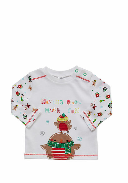 Новогодний костюмчик фирмы Matalan. Велюровый, мягенький, на плече и внизу кнопки. Впереди аппликация Мишка и Снеговик и надпись Мое первое Рождество. Состав 78% хлопок, 22% полиэстер. 0-3мес (62-68), 3-6мес (68-74) 500руб