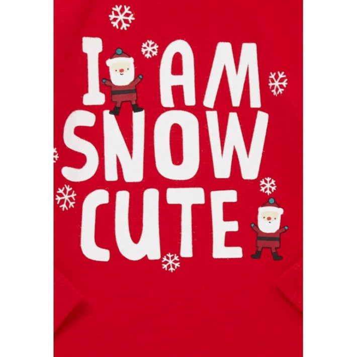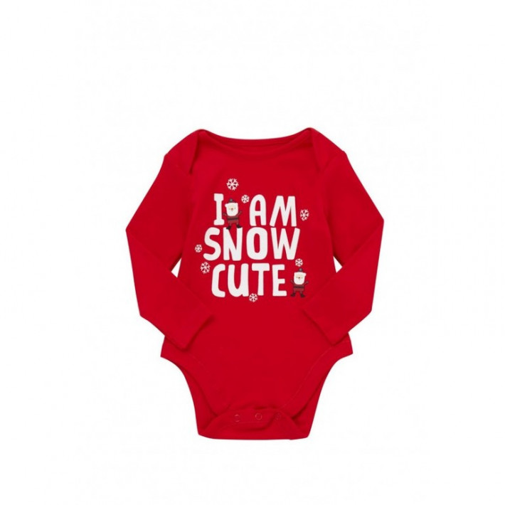 Бодик с длинным рукавом фирмы F&F. Красный с Сантами и надписью впереди. 3-6мес(62-68), 6-9мес(68-74),