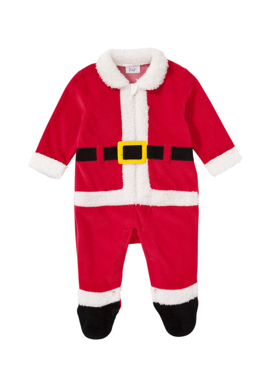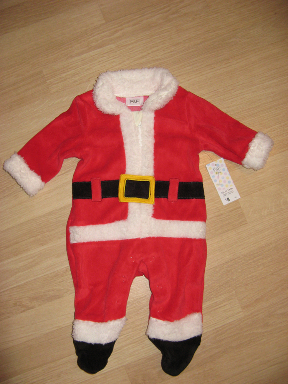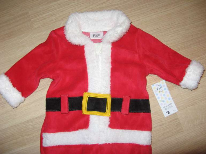 Яркий Новогодний костюмчик Санта. Велюровый, мягенький, сверху до низа молния, внизу кнопки. меховая отделка, воротничок, манжеты. Состав 75% хлопок, 25% полиэстер фирма F&F Англия. 0-1мес (56см), 790руб