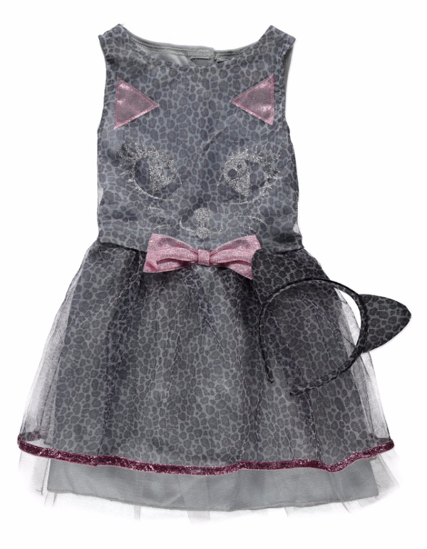 Новогодний костюм Котенок-девочка . На платьице впереди нарисована кошечка с ушками и бантиком, пышная юбка-сетка на подкладке + бархатный ободочек с ушками. Производство костюма английской фирмы George.