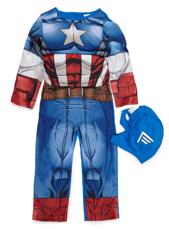 Костюм Капитан Америка фирмы BHS. Слитный костюм, сзади застежки липучки. В комплекте маска. размер 3-4г (98-104) 1700руб