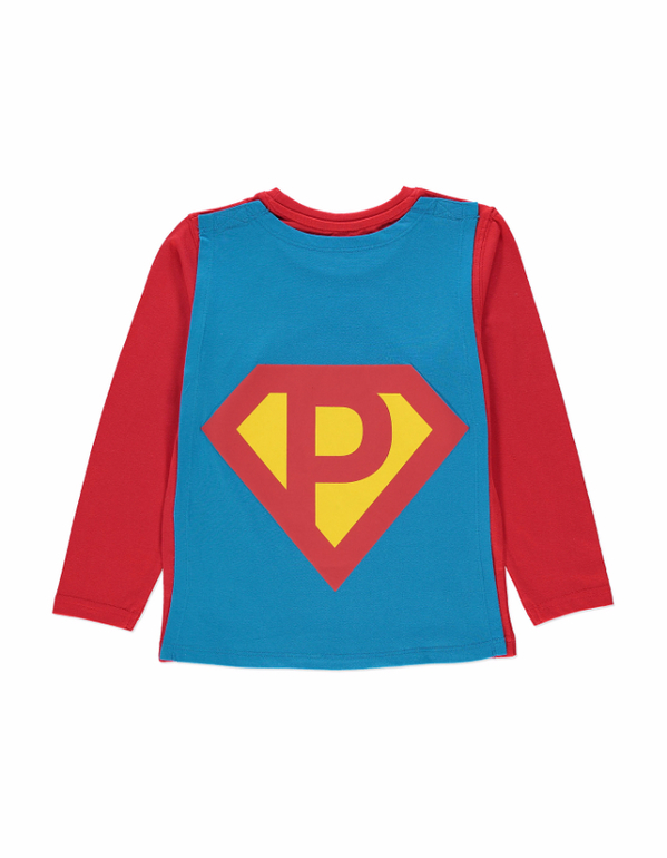 Кофточка с эффектом 2 в 1. Красная с серыми рукавами. впереди рисунок Пингвин с доской для серфинга, сзади надпись на спинке.
