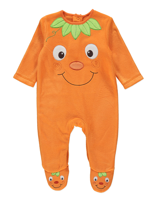 Комбинезончик флисовый фирмы George. Ярко-оранжевый, впереди аппликация Тыковка. Состав 100% полиэстер, размер 6-9мес (68-74), 9-12мес (74-80) 500руб.