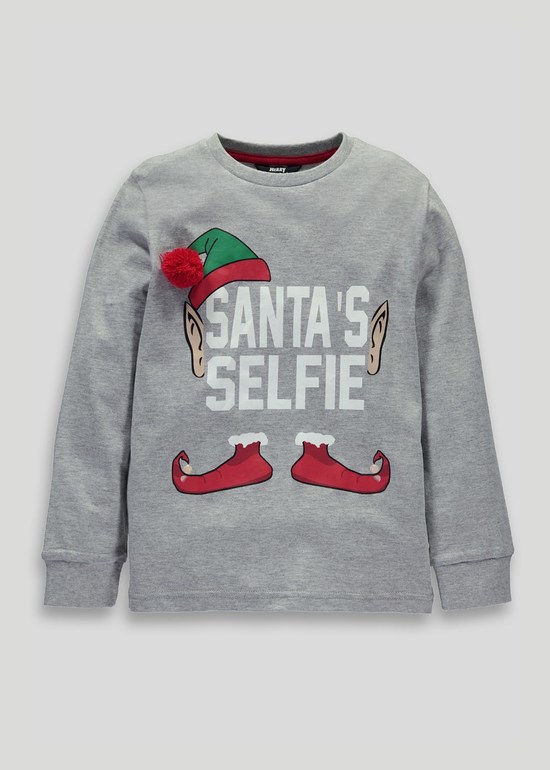 Кофточка новогодняя фирмы Matalan. Cерая, на рукавах манжеты, впереди рисунок селфи Санты, помпон на шапочке объемный из ниток. Состав 92% хлопок,8% эластан размер 8-9л (128-134), 10-11л (140-146) 500руб