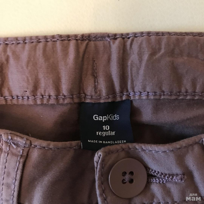 1. Новые брючки Gap без бирки . Размер: 10 лет, рост 145 см. Состав: 97% хлопок, 3% эластан. Есть утяжка. Очень приятные на ощупь, шелковистые, но плотные. Цвет подходит подо все. Замеры: Длина брюк -86, шаговый -65, бёдра - 41. Цена: 1000 руб.