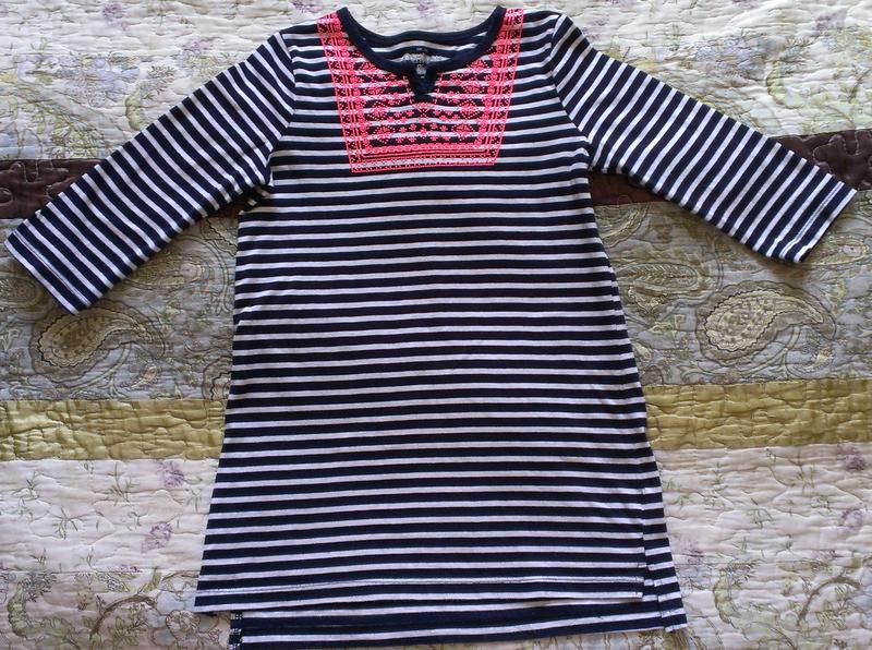 31. Туника Osh Kosh 7л, рукав 3/4 30 см от плеча, полуобхват 34, длина сзади 56, спереди 53, 300 руб.