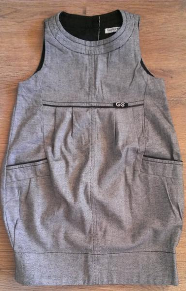 28. Сарафан Gulliver р. 122, ткань шамбре, в идеале, можно в школу, 100% хлопок, полуобхват 33, длина 62, цена 500 руб.