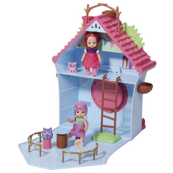 В набор вошли: двухэтажный домик, у которого в центре красуются большие часы, на втором этаже имеется окошко со створочками, по центру расположился фирменный герб Chou Chou; кукла мини-птичка, которая одета в розовую кофточку, на голове у нее забавная шапочка. Так же в комплекте имеется сова, для которой тоже предусмотрено гнездышко. Гнездо можно прикрепить на домик. Домик раскладывается. На крыше есть держатель для переноски.