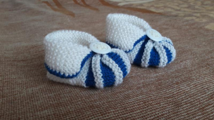 Связались вот такие пинетки. Длина стопы розовые - 10 см, синие 10,5 см