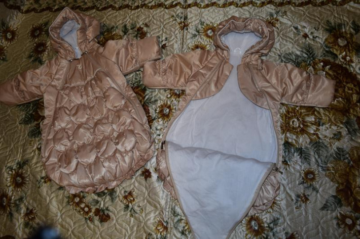 Описание: Ткань верха: плащевая ткань(САТИН) с атласным блеском водонепроницаемая Подклад: 100% хлопок Утеплитель: 100-150 г/м2 холлофан Рукава с отворотами,капюшон с ушками,шикарная объёмная стежка в виде сот, молнии с двух сторон. Очень подойдет для торжественной выписки вашего малыша!