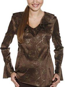 1. Блузка для беременных коричневая с золотистыми цветами, сзади на завязках, изменяющих объем живота, 400 р.