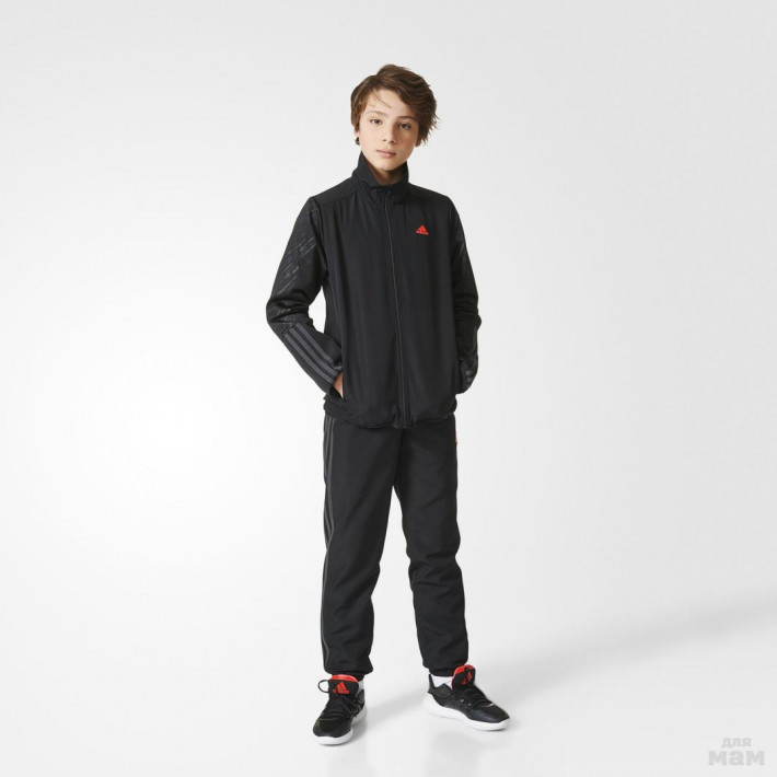 5)детский спортивный костюм Adidas Urban Football, Артикул AX6352 - это превосходная модель для юных футболистов, желающих тренироваться при любой погоде. Стильный дизайн разработан в духе уличных спортивных площадок. В комплект входит куртка и брюки, изготовленные из 100% полиэстера. Куртка застегивается на молнию и дополнена боковыми карманами для рук. Брюки оснащены поясом на завязках, карманами и эластичными манжетами. Классический крой оптимально садится по фигуре. Фирменный логотип Adidas и три полоски на рукавах придадут стильности.