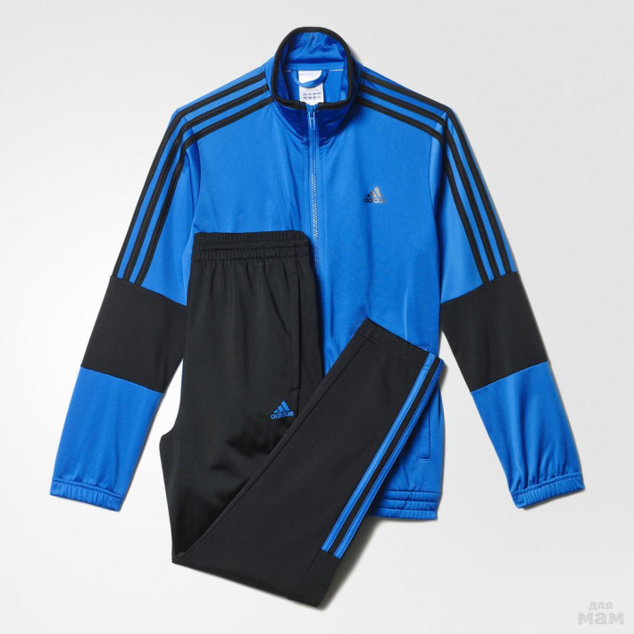 8)Детский костюм Adidas Separate Tiberio Kids, Артикул S23330. Стильная и функциональная модель спортивной одежды для тренировок при любой погоде. Современный дизайн черного цвета дополнен контрастными вставками по бокам. Комплект состоит из олимпийки и брюк, изготовленных из 100% полиэстера. Олимпийка оснащена воротом-стойкой, молнией по всей длине на передней стороне и боковыми карманами для рук. Брюки с эластичным поясом и манжетами на резинке. Фирменный логотип Adidas и классические три полоски .