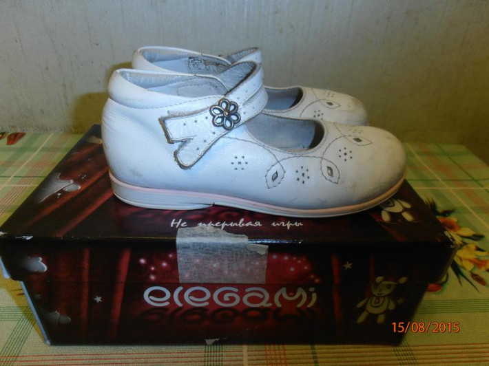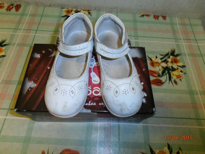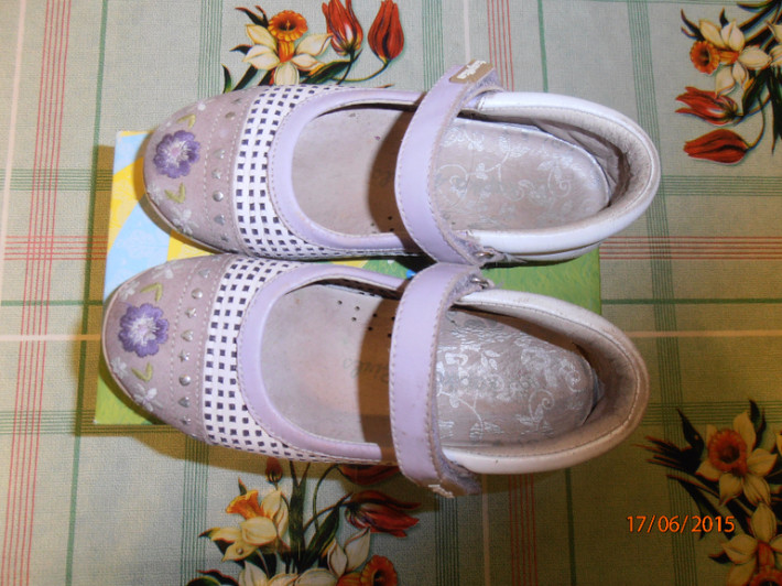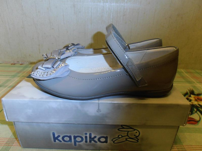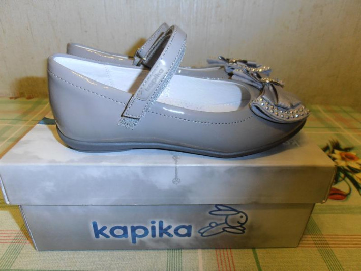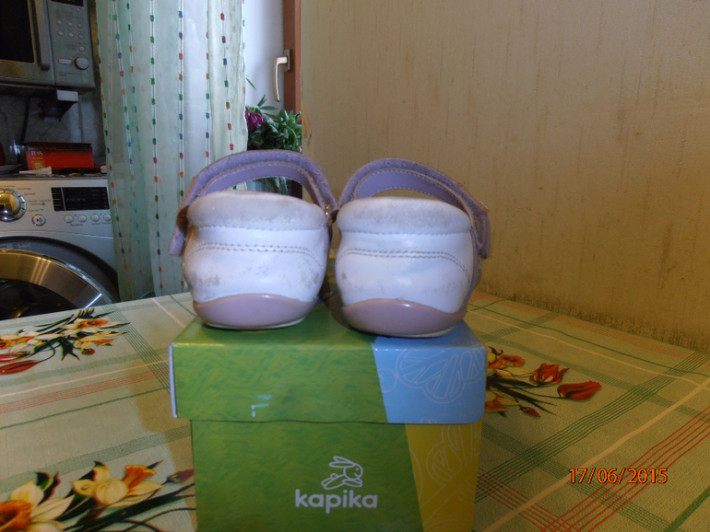 2) Туфельки Капика - 29 размер, верх - иск. кожа, внутри - нат. кожа, надевали 2 раза на утренник, практически новые, очень красивые, 1000 руб.