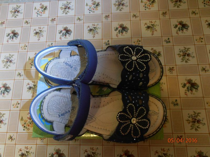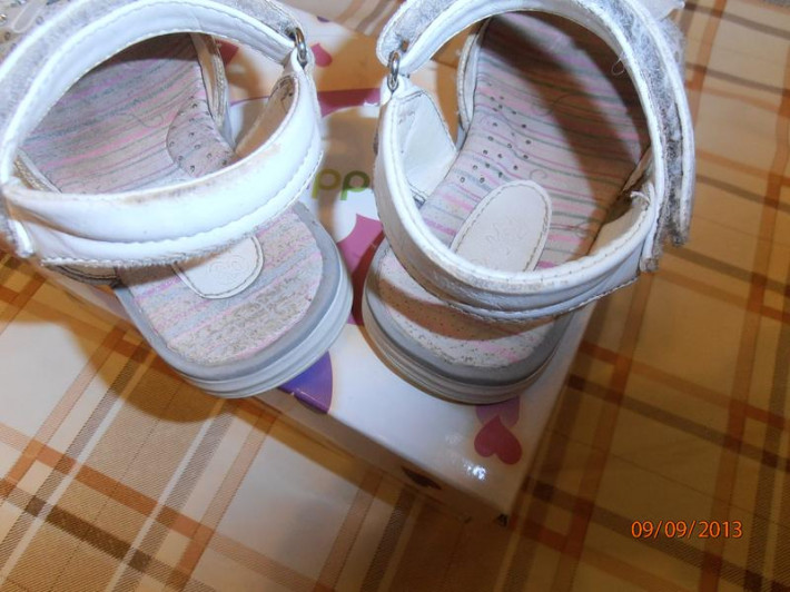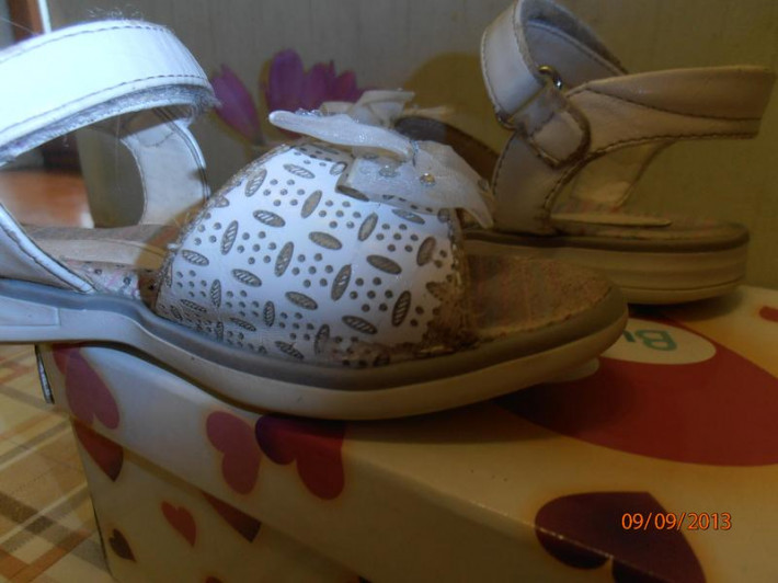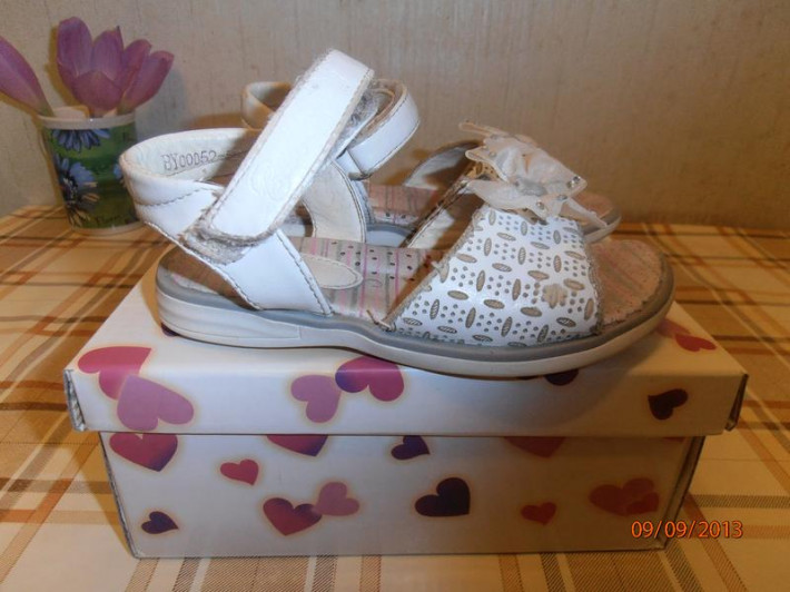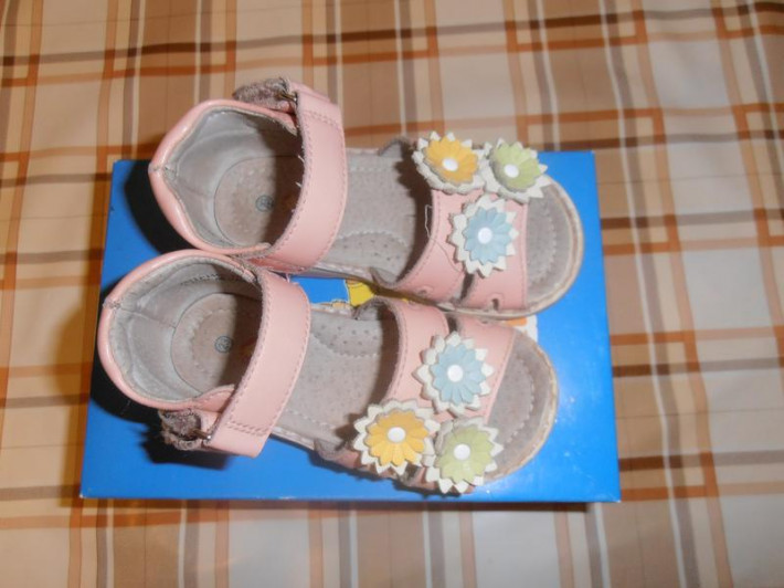 10) Сандалики Hellenia - размер 24, чисто девчачья модель, в цветочек, мягкая кожа, красивый дизайн, хорошо в садик на сменку, задник НЕ жесткий 350 руб.