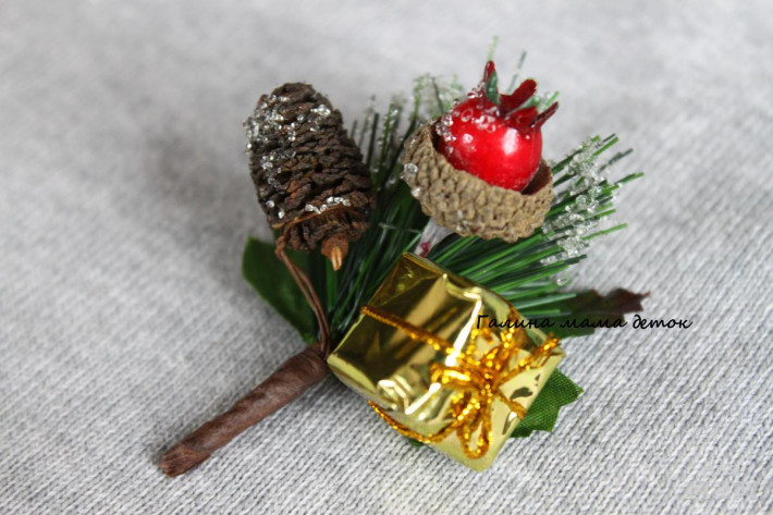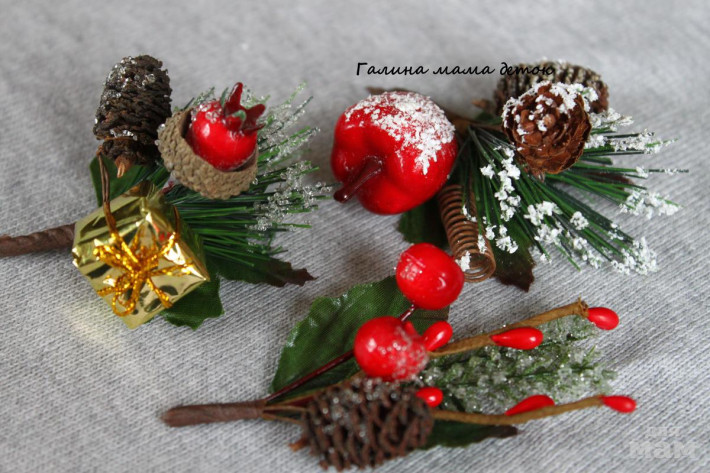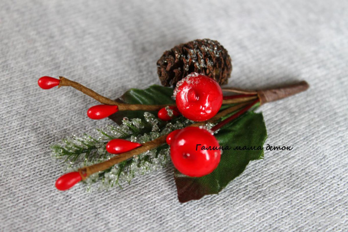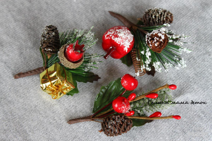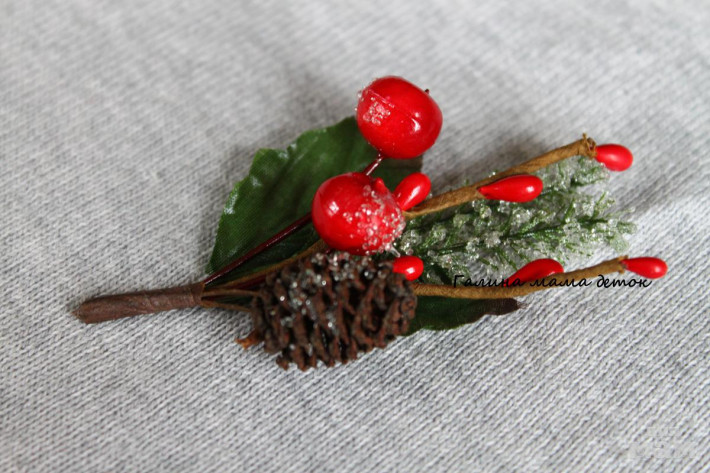 Новогодние веточки, крепление брошь-зажим. На платье или жакет,а также как заколочка для волос.