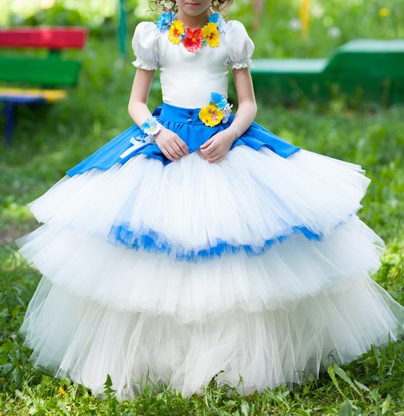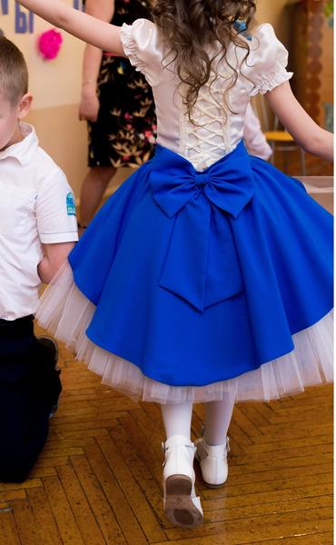 В комплекте накидка на юбку василькового цвета, пояс (фото отдельно сделаю), бант на броши (его можно или на накидку прицепить или на пояс).