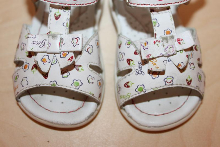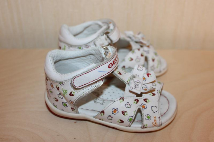 6. Босоножки GEOX (Италия). Размер 19. Очень удобные, легкие, натуральная кожа. В хорошем состоянии, есть небольшие потертости (видно на фото). Цвет белый. Длина по стельке 12 см. Цена 600 рублей.