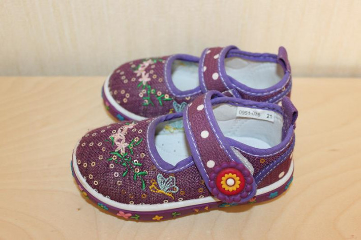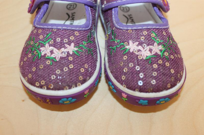 14. Кроссовки MINNIE MOUSE. Размер 22. Кроссовки очень легкие и мягкие. На кроссовках немного потерты носы (видно на фото). Цвет сиреневый. Длина по стельке 13,5 см. Цена 200 рублей.