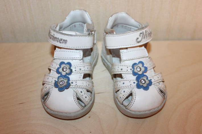 5. Босоножки MINIMEN. Размер 18. Очень удобные, легкие, натуральная кожа. В отличном состоянии. Длина по стельке 11,5 см. Цвет белый. Цена 700 рублей.