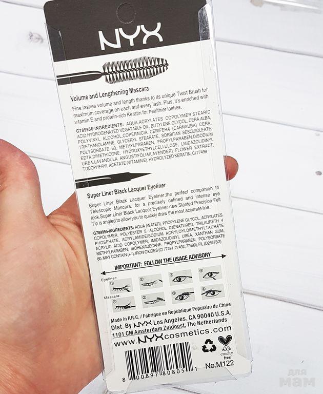 Тушь для ресниц + подводка для глаз, 2 в 1,  Nyx "Clear Smooth", 8 ml + 10 ml  - 350руб
