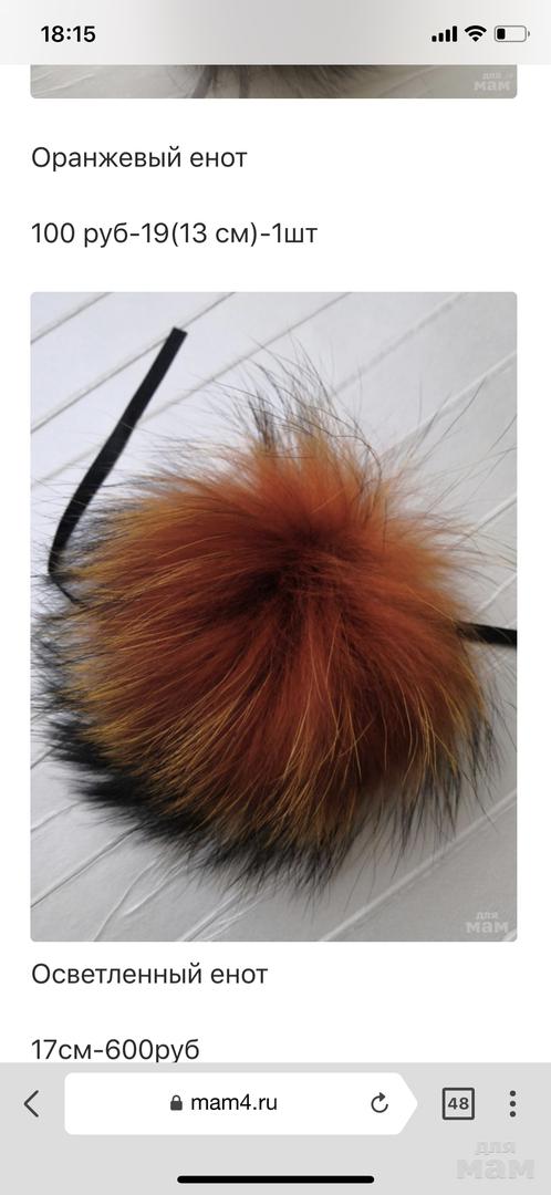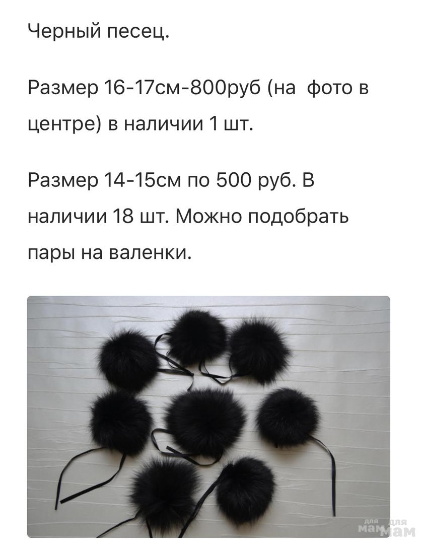 Готовые помпоны разных размеров. Шью сама из новых шкур фабричной выделки. Крепление только на лентах. Первый размер-это размер по перьям, второй размер в скобках-это размер по подпушку. Отправляю почтой по России 1 классом от 200 руб после оплаты без задержек ( на следующий день после оплаты). По запросу предоставлю фото любого помпона с разных ракурсов и видео. Отзывы о моих работах можно почитать в моем дневнике http://www.mam4.ru/post/27194/