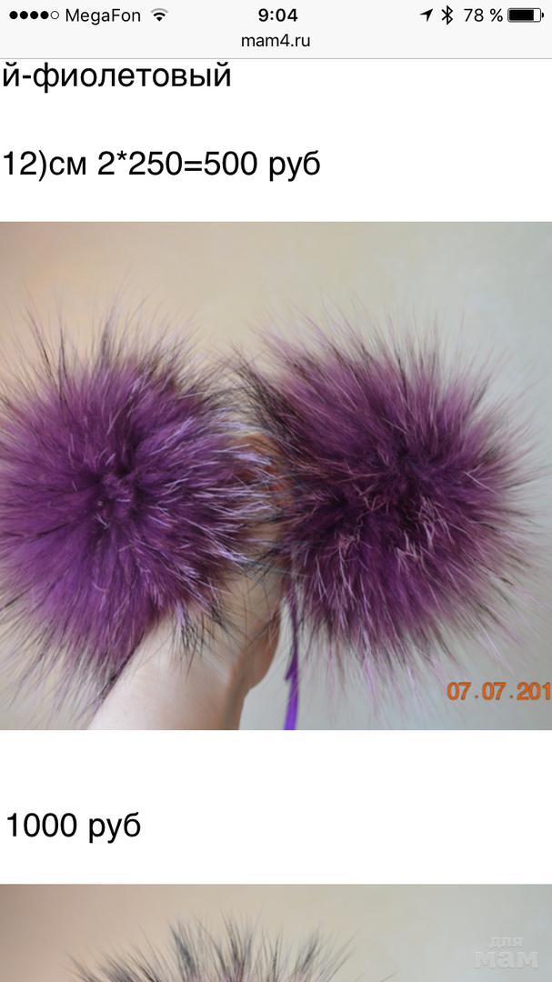 Готовые помпоны разных размеров. Шью сама из новых шкур фабричной выделки. Крепление только на лентах. Первый размер-это размер по перьям, второй размер в скобках-это размер по подпушку. Отправляю почтой по России 1 классом от 200 руб после оплаты без задержек ( на следующий день после оплаты). По запросу предоставлю фото любого помпона с разных ракурсов и видео. Отзывы о моих работах можно почитать в моем дневнике http://www.mam4.ru/post/27194/