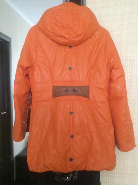 Продам куртку,48-50 размера,цвет "сочно-морковный",утеплитель синтепон-120 гр.Б/У мало!По низу на резинке.Производство-Россия.Длина рукава-66 см,длина куртки по спинке-81 см.Капюшон на молнии-съёмный!Есть пояс-резинка!