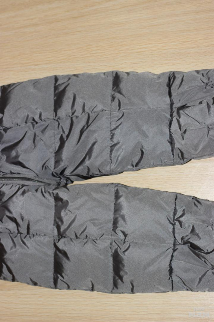 б/у активно, но на ткани следов носки нет, из нюансов на молнии на собачках язычки отвалились, но остались колечки на которые можно привесить другие, на п/к на ножках резинки растянулись, на эмблемке стразик выпал. Маркирован 3, но подойдет на рост до 92см. Набит пухом плотно, очень теплый.