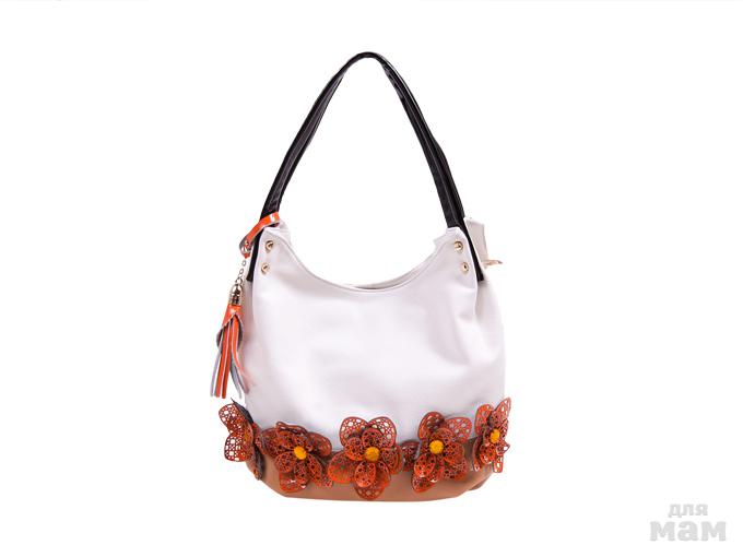 Главным украшением сумочки являются объемные цветы оранжевого цвета выполненные из натуральной кожи. На ручке: игривый хвостик.