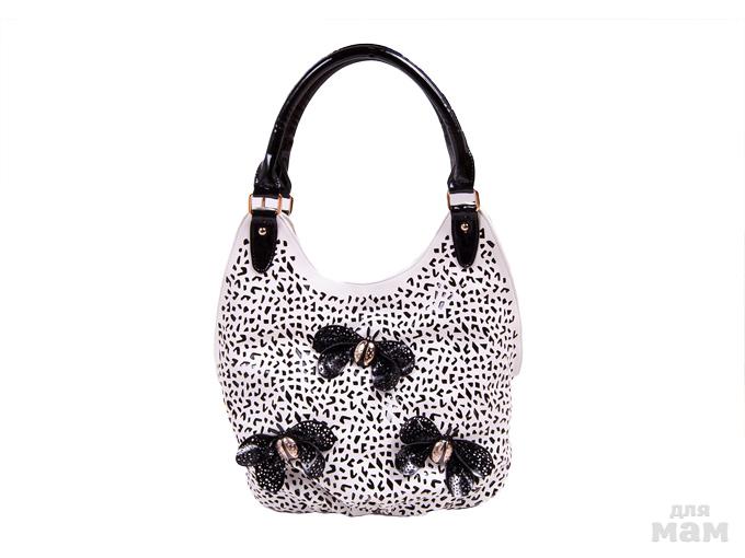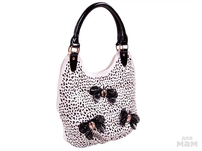 Сумочка комбинированная: верх белый, низ: бежевый. Закрывается на молнию, носится на плече или на сгибе руки.
