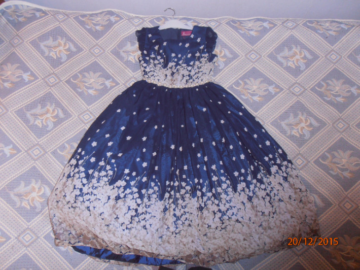 ДД! Померили платье, на рост 140 см - идеально село,смотрится очень красиво...пожалуй, продавать не будем.... 2 года назад было оооочень велико и в длину, и в ширину, вот рост не помню, какой тогда был, сзади поясок узенький, на мой взгляд, юбка пышная, подъюбник хб, на него в нижней части нашито 2 слоя сетки жесткой, что придает пышность, и еще один подъюбник сверху из блестящей ткани типа атласа.